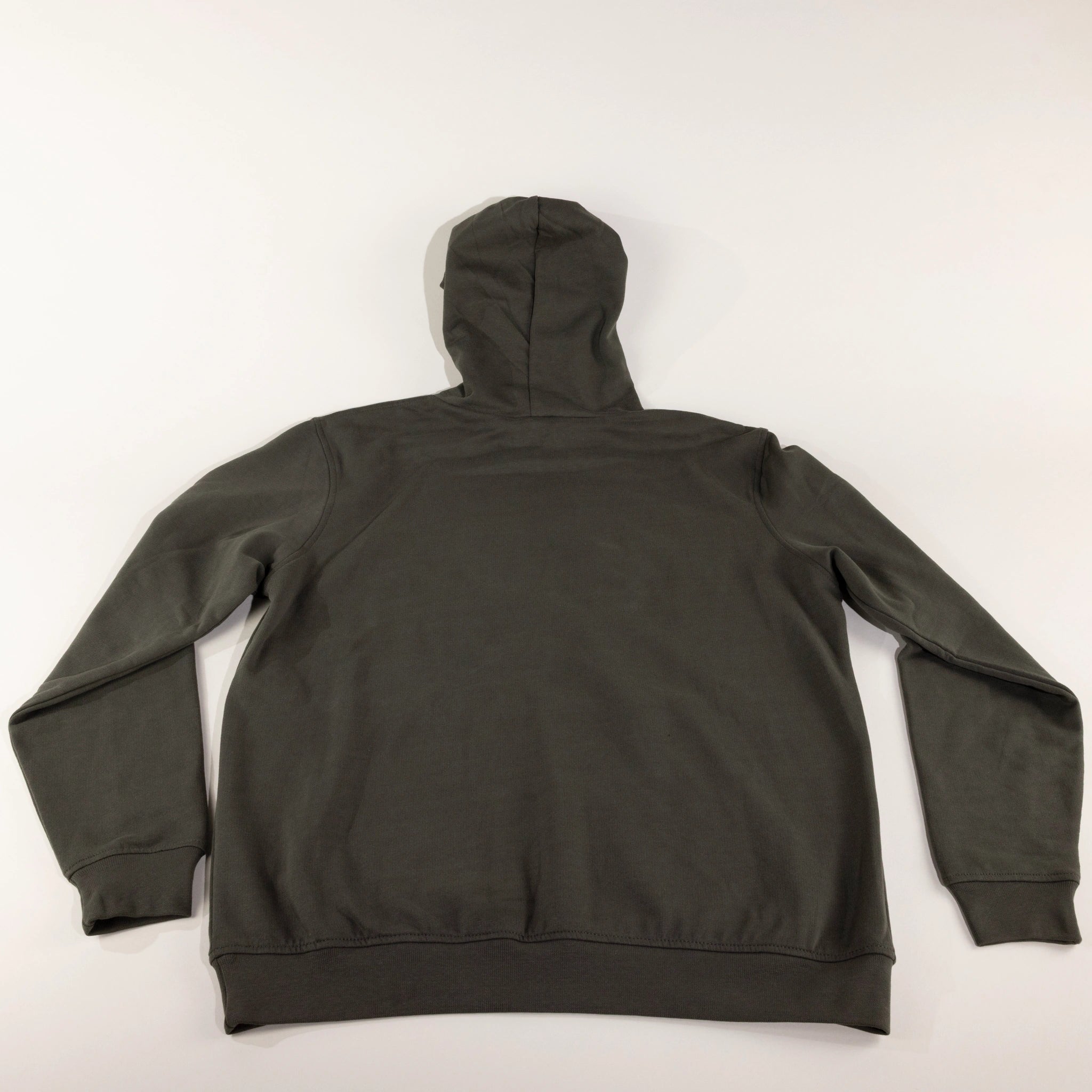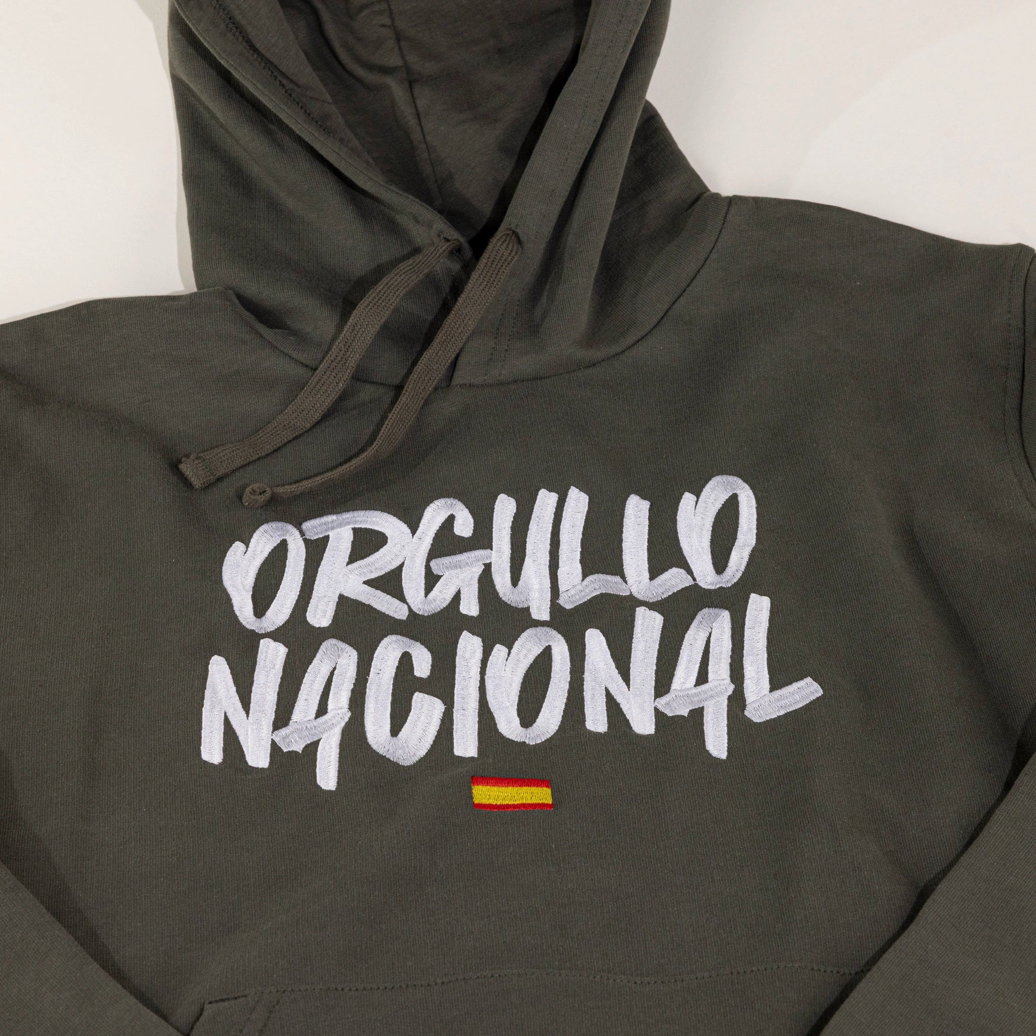 Sudadera verde fabricada en España con mezcla de 80% algodón y 20% poliéster y bordada.