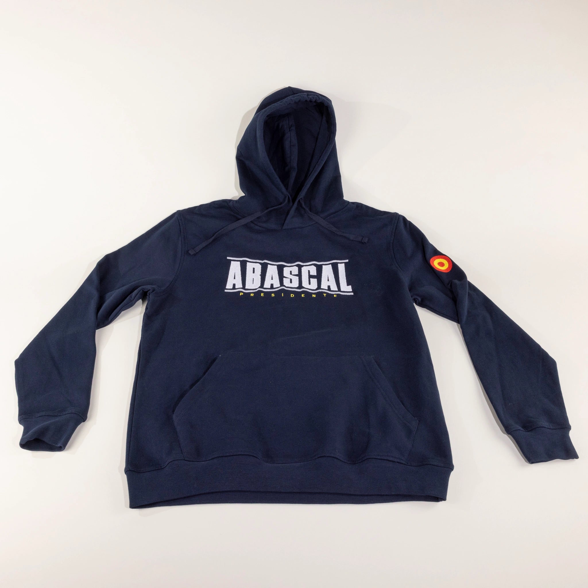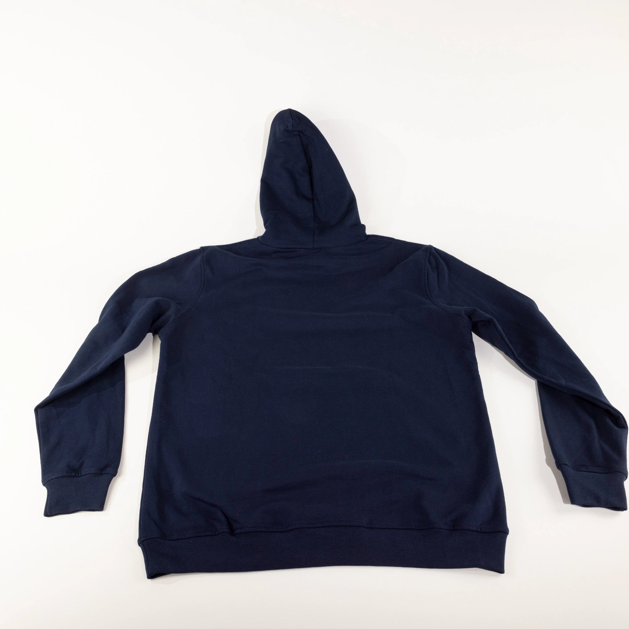 Sudadera azul marino de confección nacional con tejido mixto: 80% algodón y 20% poliéster.